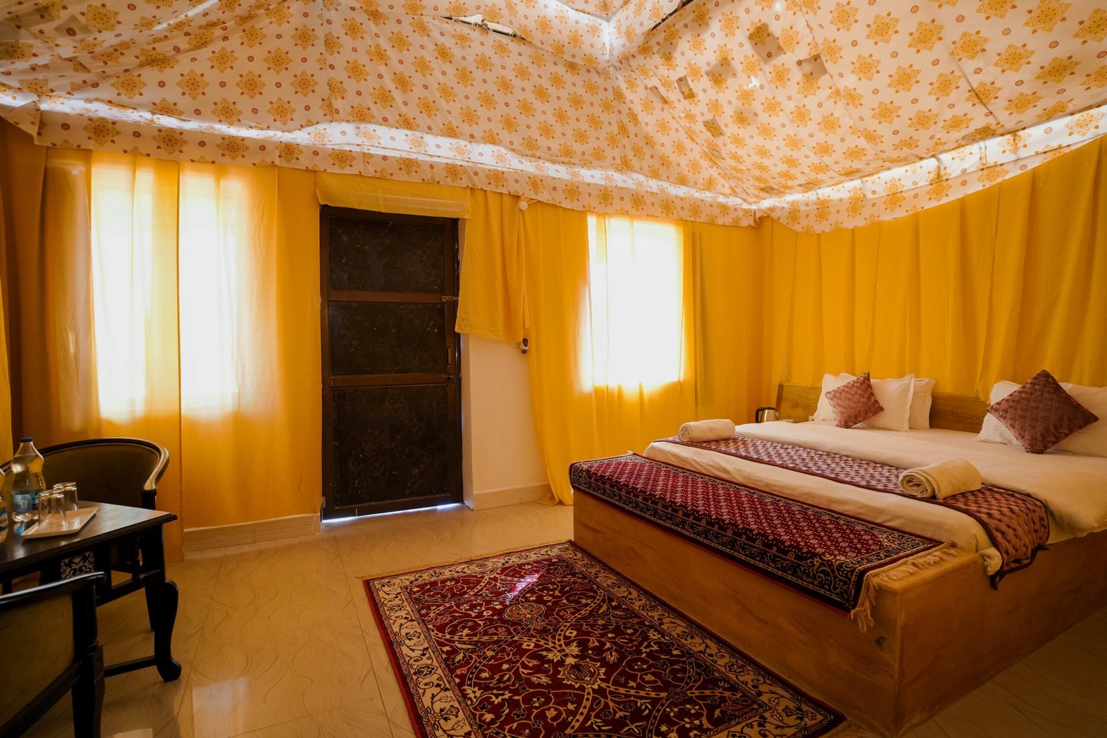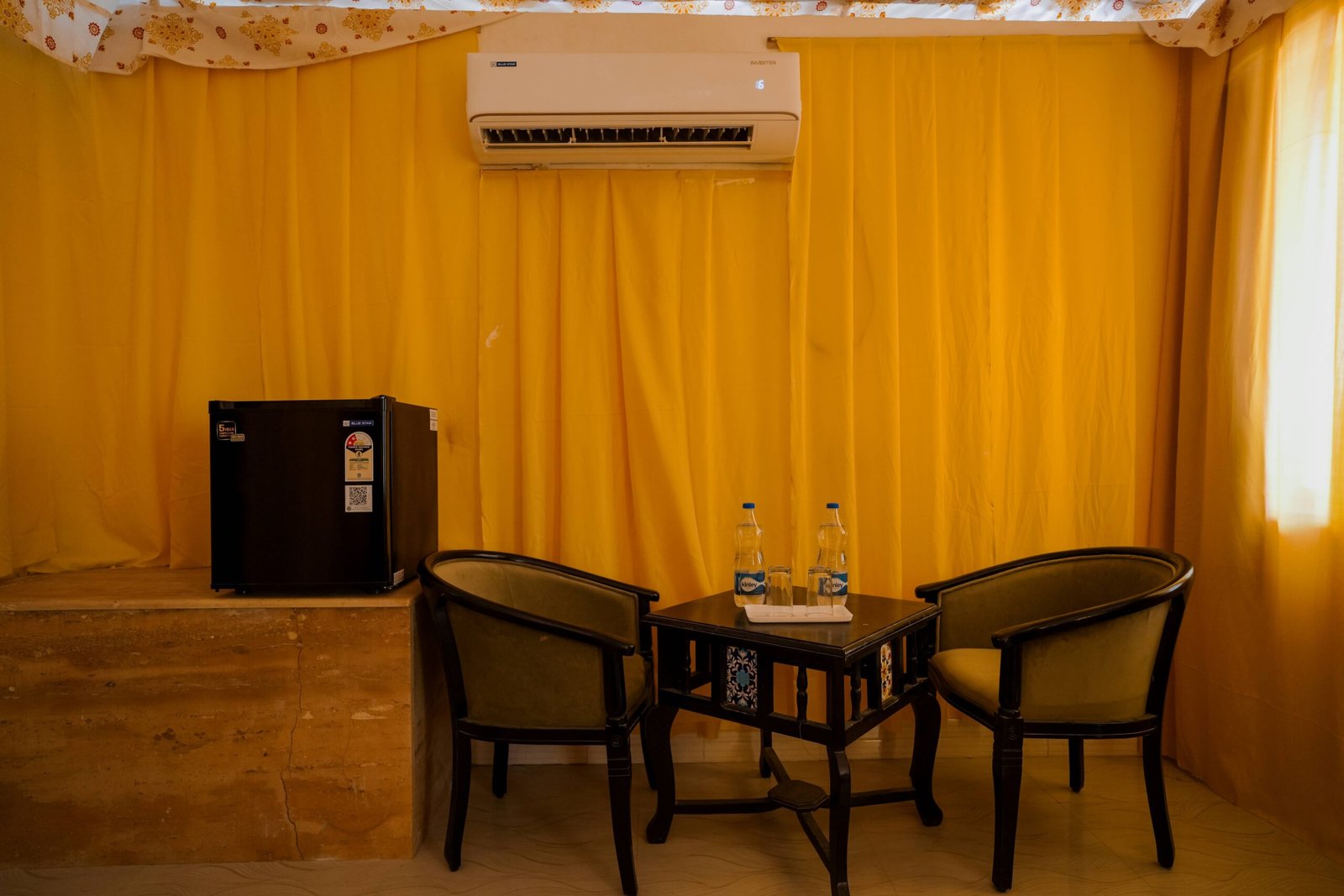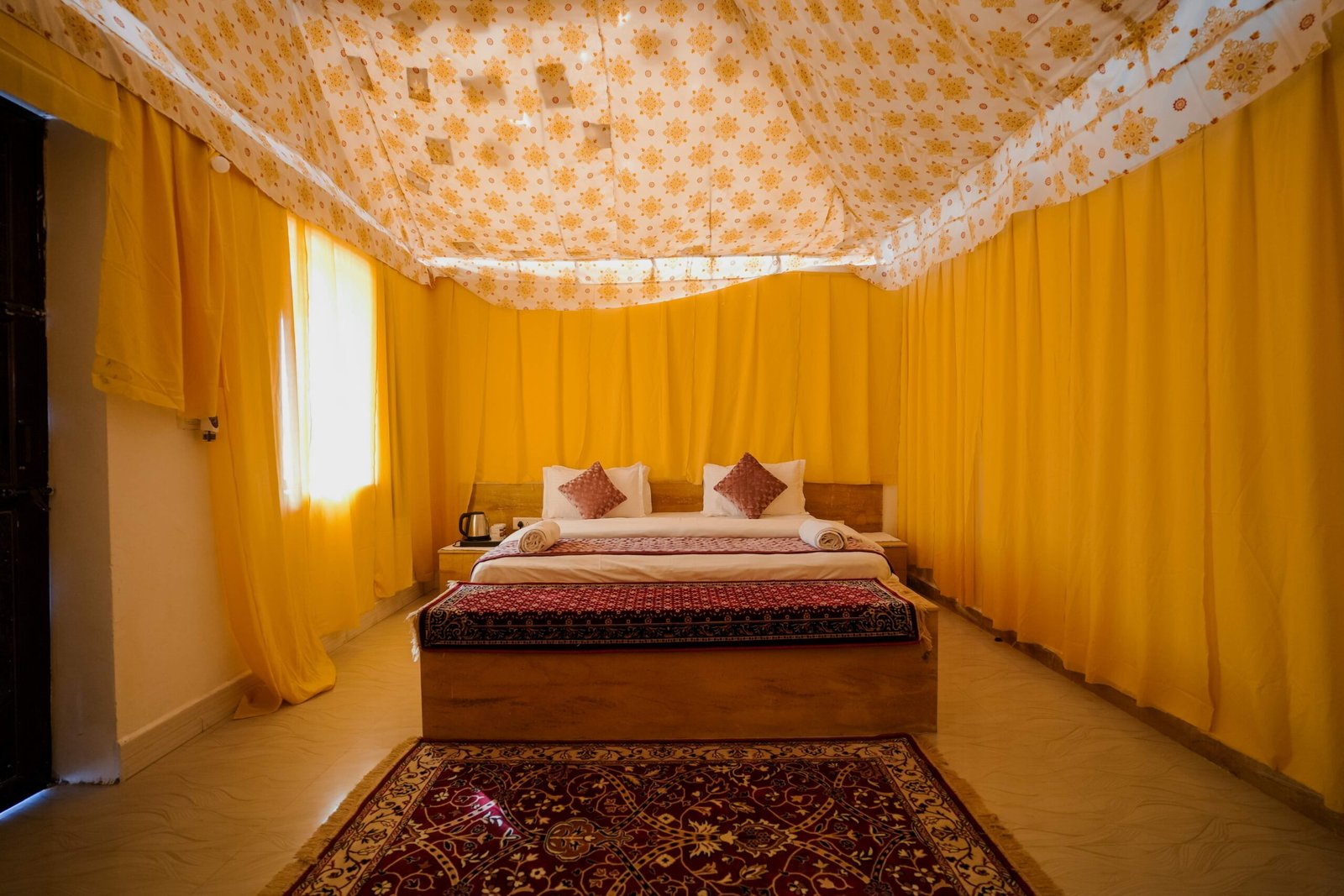 Equipped with air-conditioning, cozy bedding, and well-furnished spaces, the cottages ensure a restful stay after a day of desert adventures. Guests can relax on private sit-outs, soak in the views of the golden dunes, and enjoy peaceful evenings under starlit skies. Perfect for couples, small families, or solo travelers, the Deluxe AC Cottages promise a warm and memorable stay that beautifully blends tradition with modern hospitality.