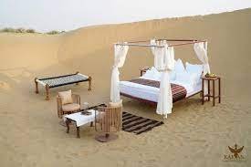 Located near the famous Sam Sand Dunes, staying on the dunes provides a unique opportunity to watch breathtaking sunsets, experience traditional Rajasthani cultural programs, and enjoy authentic desert hospitality. Guests can relax around a bonfire, enjoy delicious dinner arrangements, and sleep under the star-filled sky while listening to peaceful desert winds.